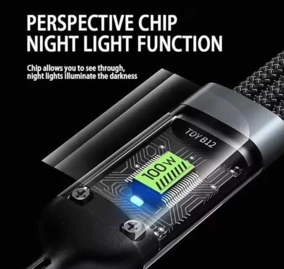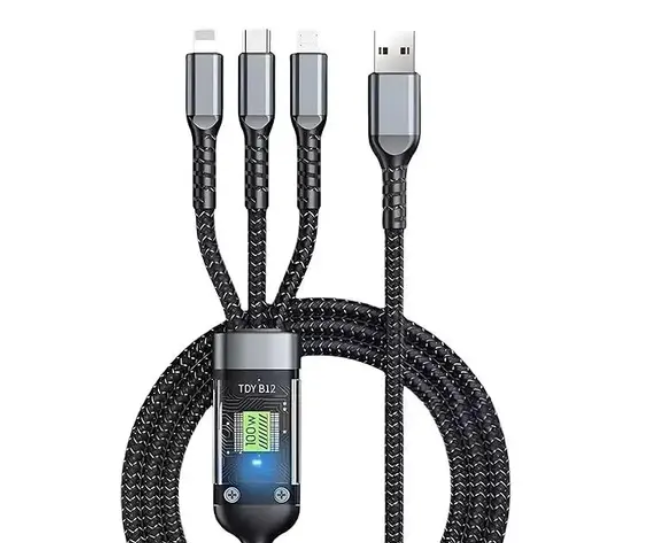 100W 3-in-1 Fast Charging Cable (Type C, Micro USB, Lightning)