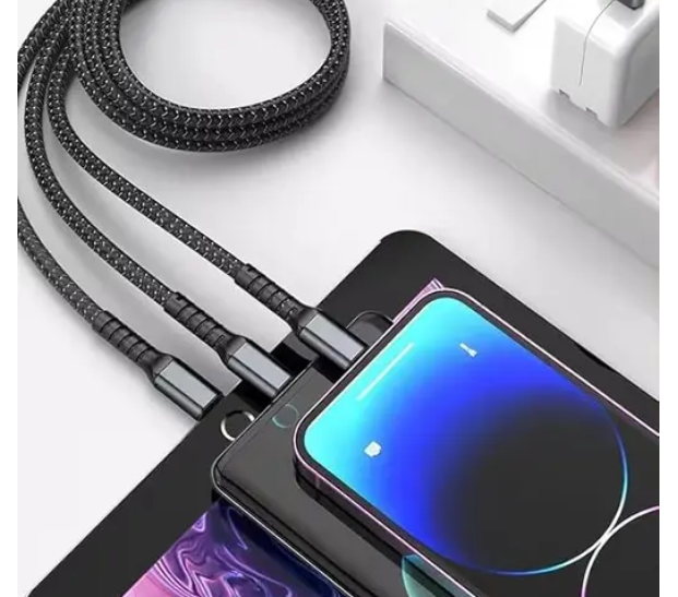 Upgrade your charging experience with our 100W 3-in-1 Fast Charging Cable—a versatile and durable solution for all your devices! Whether you own a smartphone, tablet, laptop, earbuds, or Bluetooth speaker, this multi-functional cable ensures fast charging and high-speed data transfer (480 Mbps) with ease.